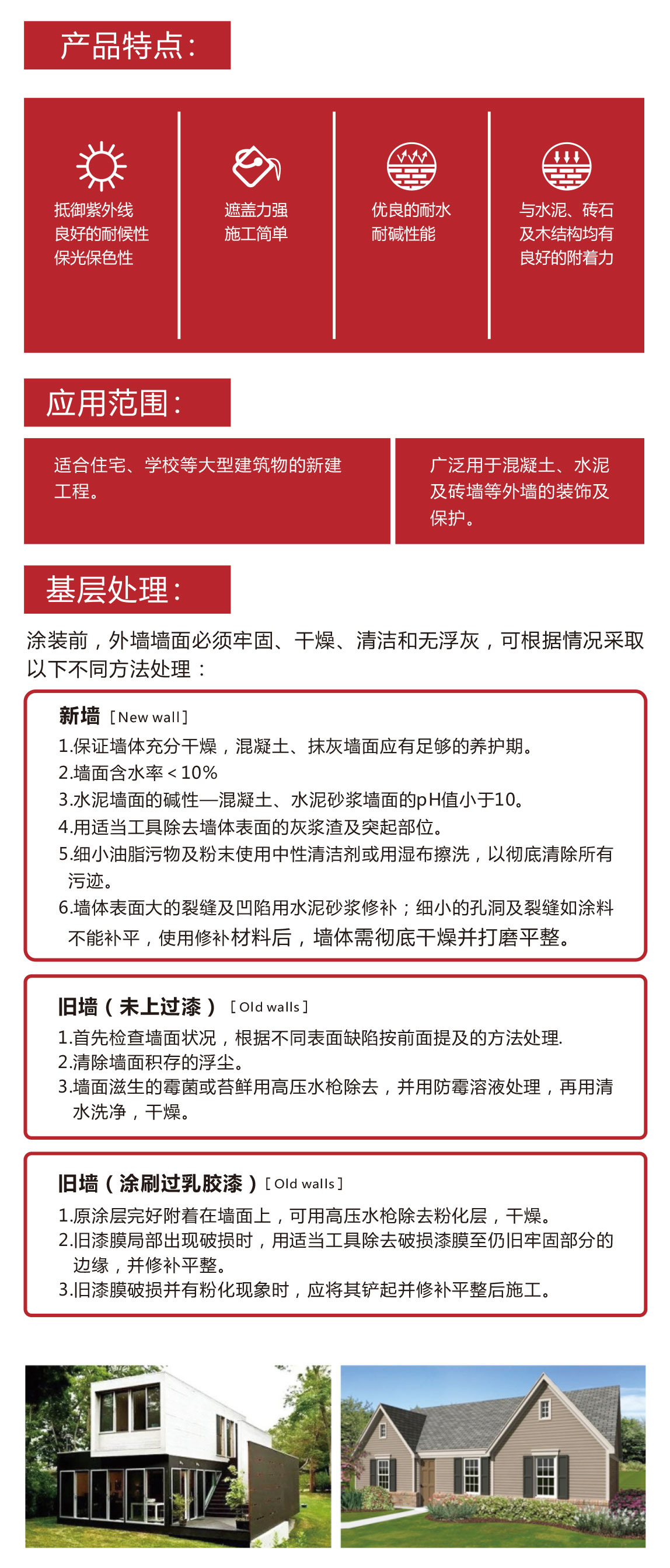 超耐侯外墻水漆是一款改性丙烯酸類(lèi)外墻面漆,具有出色的保光保色性能及戶(hù)外耐久性,可廣泛用于混凝土、水泥及磚墻等外墻的裝飾及保護。